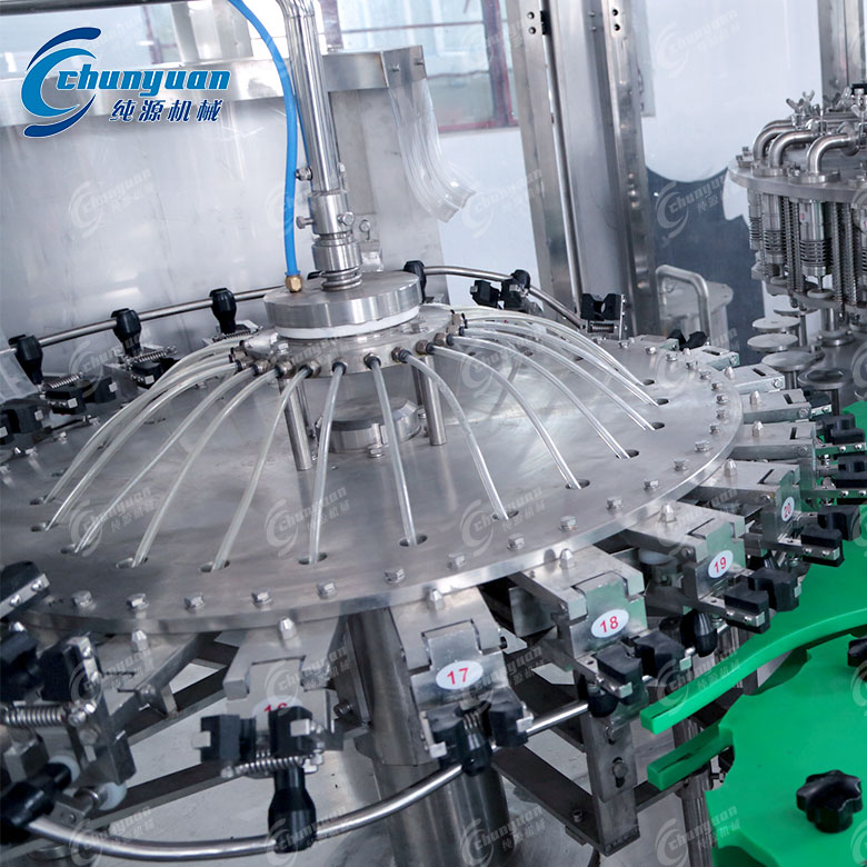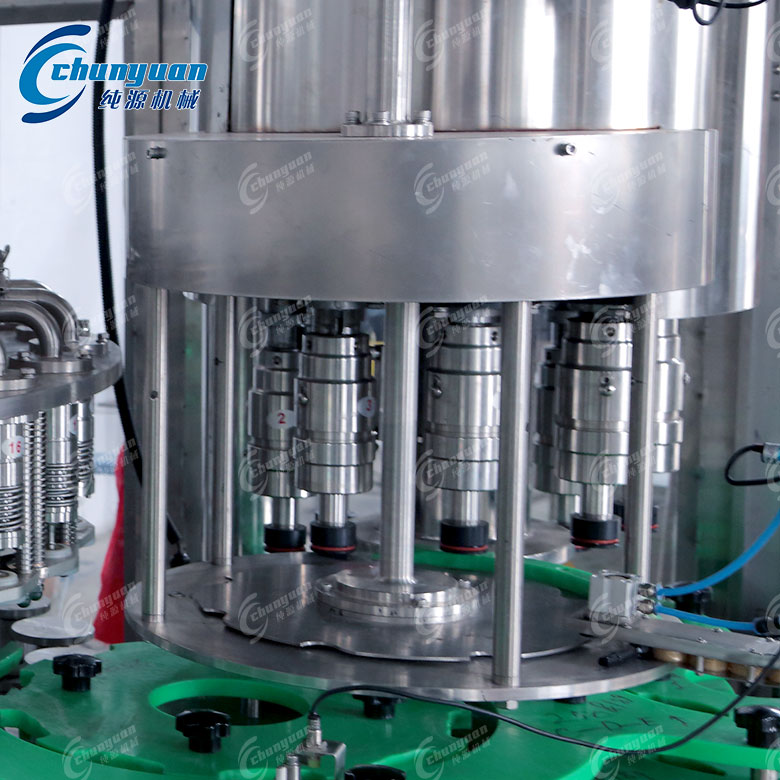 配合后道倒瓶裝置(使瓶蓋內(nèi)壁受熱殺菌)和冷卻隧道,實(shí)現(xiàn)無菌灌裝效果。