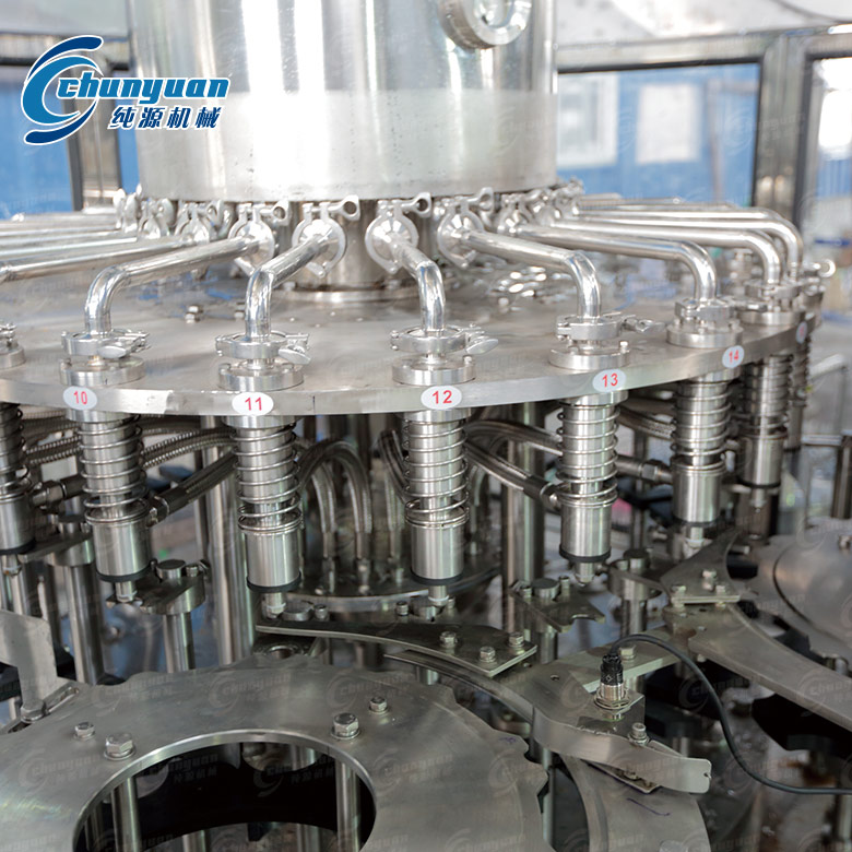 純?cè)礄C(jī)械經(jīng)過(guò)多年來(lái)的實(shí)踐和研發(fā),制造的全自動(dòng)酵素飲料機(jī)械結(jié)構(gòu)合理,灌裝閥控制精密不堵料,不卡瓶,不掉蓋。酵素果蔬汁灌裝設(shè)備適用于灌裝酵素果汁、橙汁、蘋(píng)果汁等不含氣飲品的灌裝。