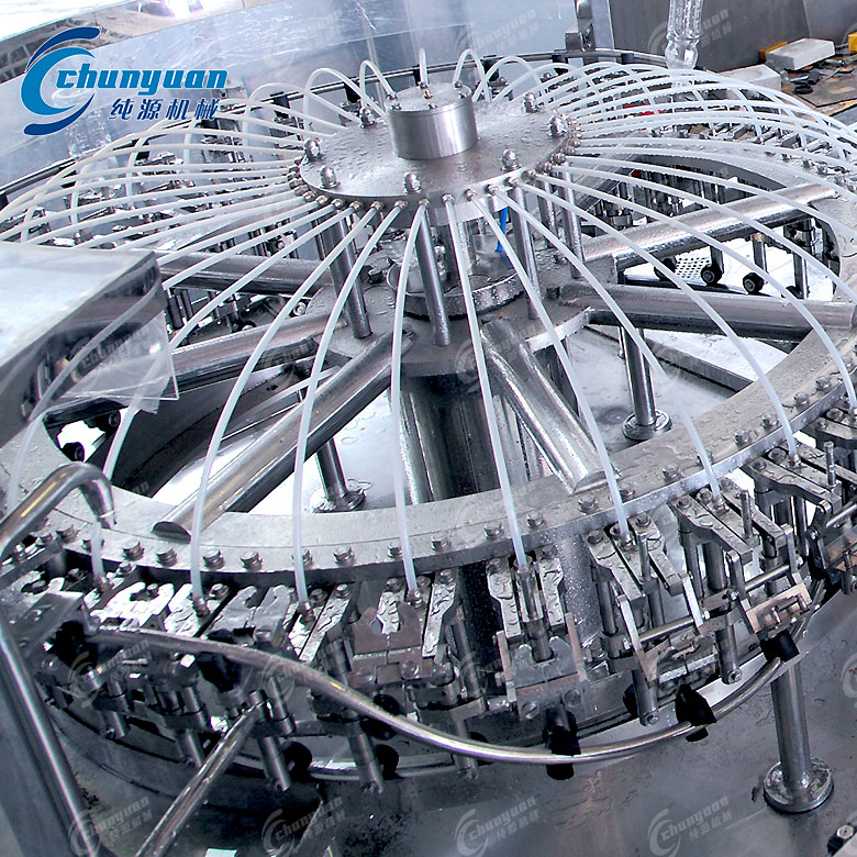 將沖洗瓶、灌裝、封蓋、貼標(或旋蓋/噴碼)四大工序集成于一條生產(chǎn)線,結(jié)構緊湊,節(jié)省空間,提高效率。